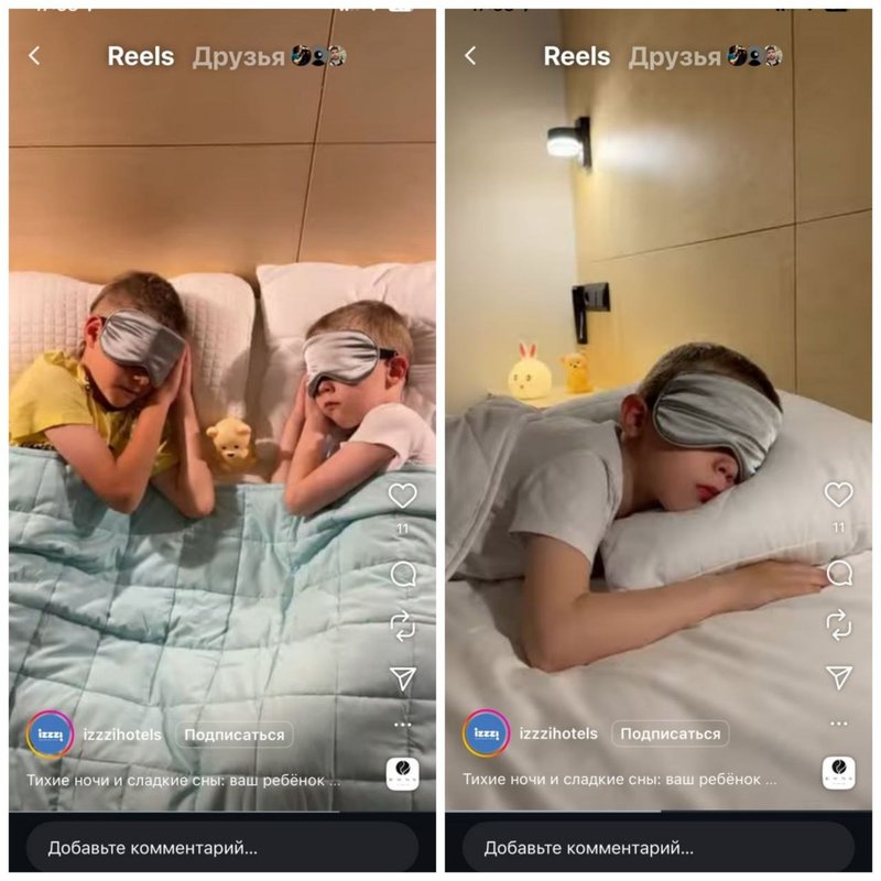 Отель IZZZI использует Instagram*, чтобы подробнее рассказать о специальных аксессуарах для сна детей: ночник и плеер со сказками